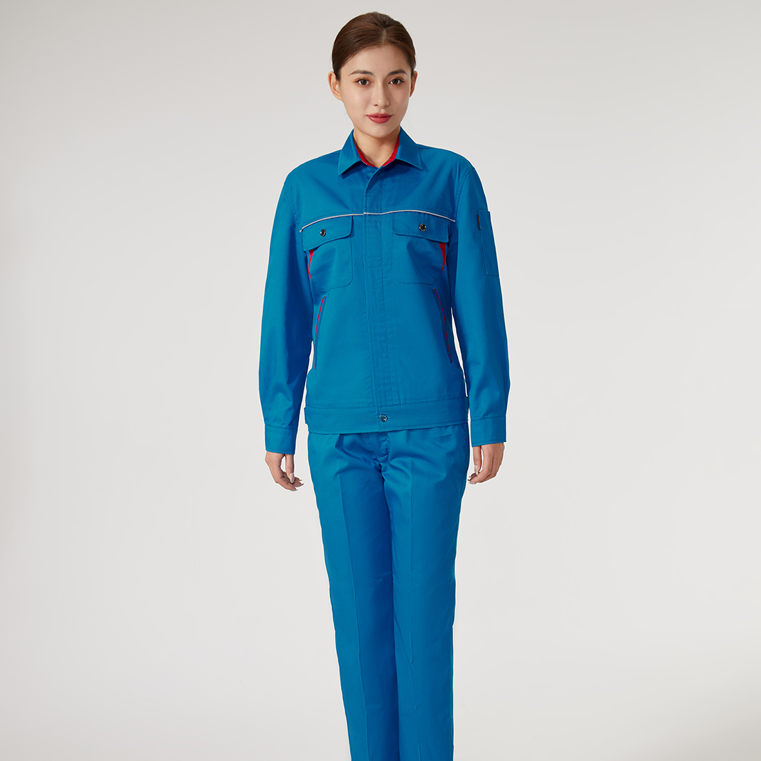 彩蓝拼大红色工作服AC2202-2