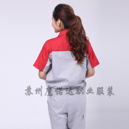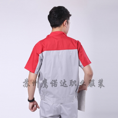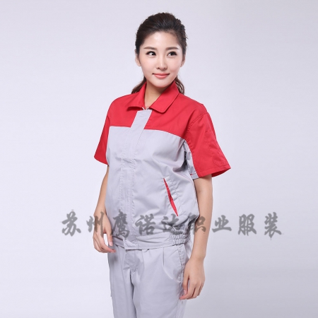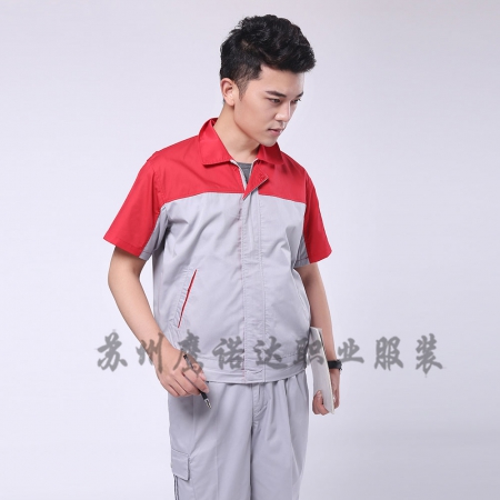 大红配浅灰夏季工作服AD078-XJ